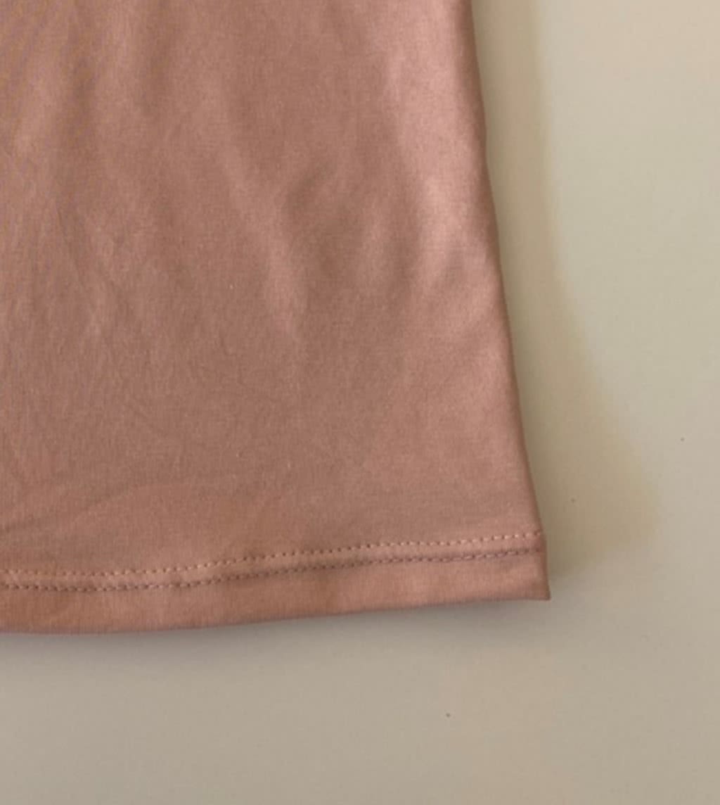 Werk de onderkant van de top af, bij voorkeur met een tweelingnaald zodat de rekbaarheid van de stof behouden blijft.
