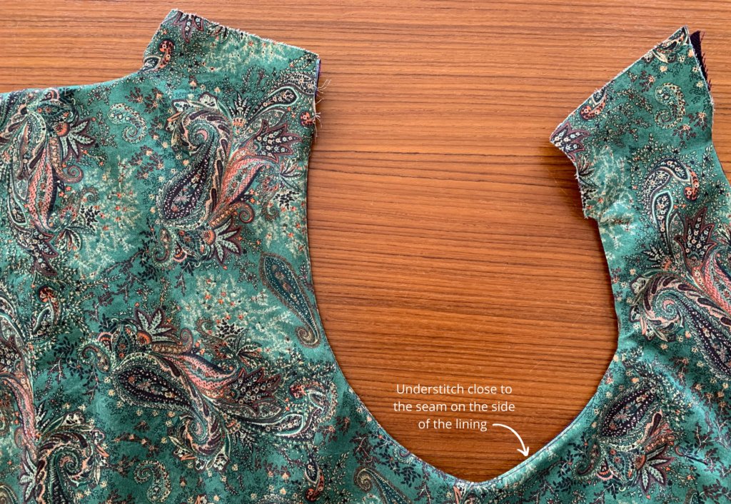 TUTORIALS continued (25)Turn to the correct side of the fabric and understitch around the neckline, where possible, as close to the seam on the lining side.