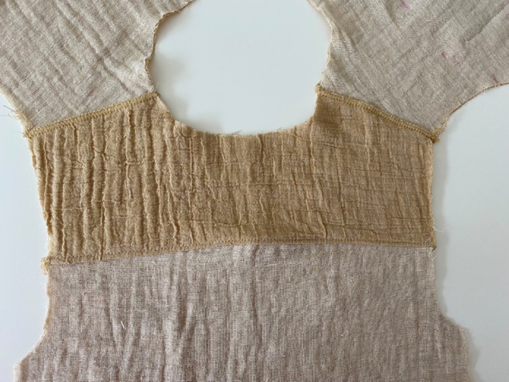– Sandwich the back bodice (no 2) between the two yokes (no 3).