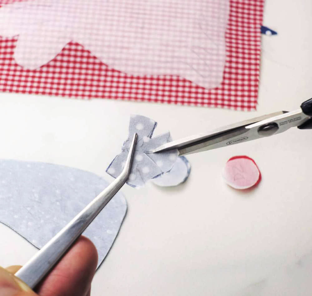 In some cases, applique pieces can be small and fiddly. We suggest using tweezers to hold these pieces while you cut.