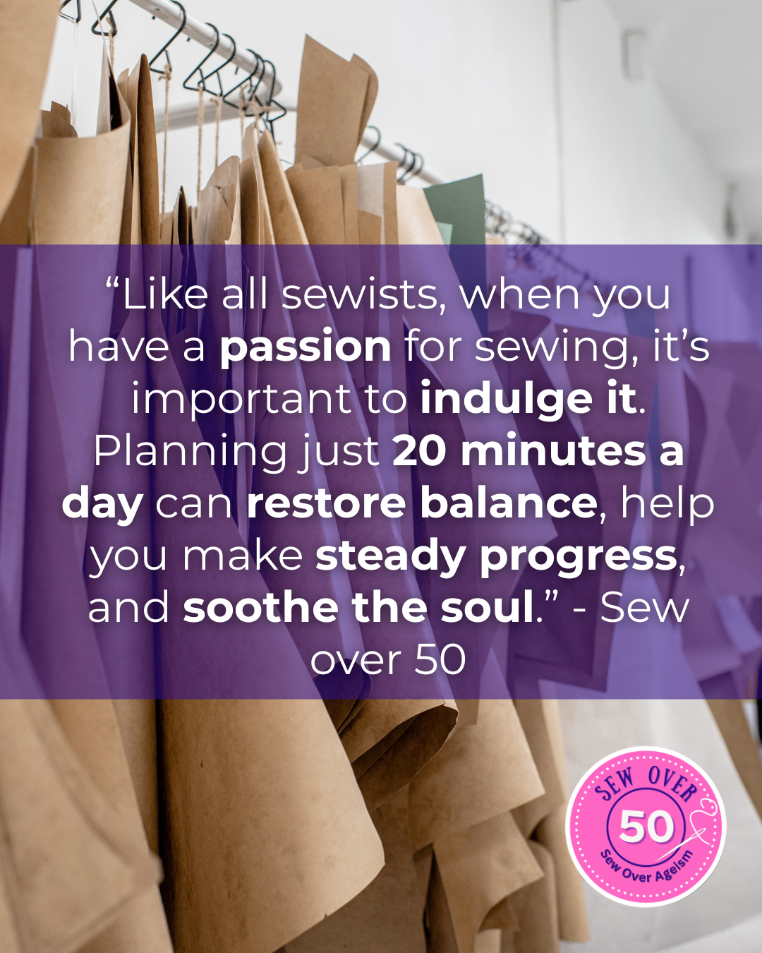 Like all sewists, indulging your passion is key. Even planning just 20 minutes a day can restore balance, help you make steady progress, and soothe the soul. The @SewOver50 editors work hard to bring relevant topics, authenticity, and a welcoming safe space. We hope to inspire younger sewists so they never have to ask, “Where are we?”