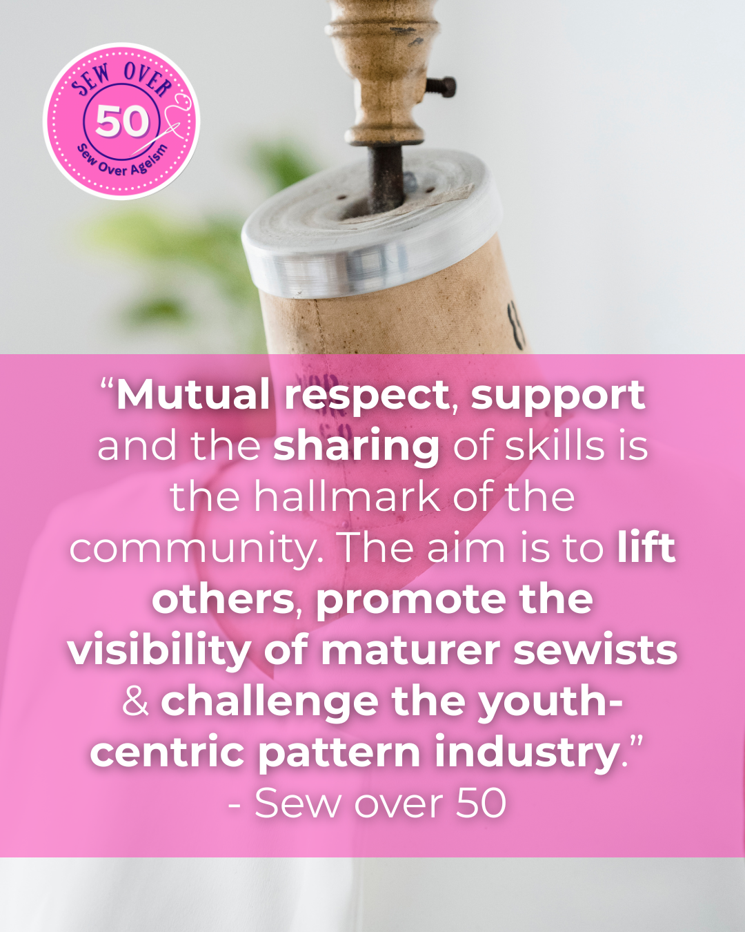 A call-out from Judith (@JudithRosalind) in 2018 asked on Instagram, “Is there a space for sewers over 50?” At a time when this demographic was rarely seen, the answer was a resounding yes. From that simple question, @SewOver50 was created and has since grown into the largest sewing community of its kind, now with over 56k members.