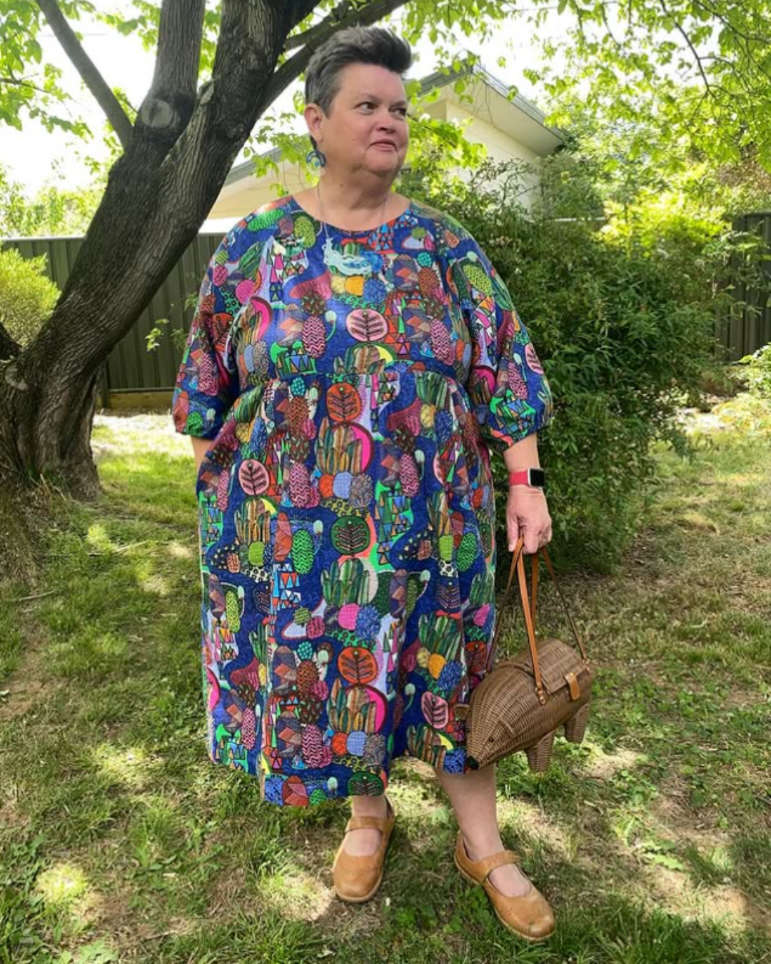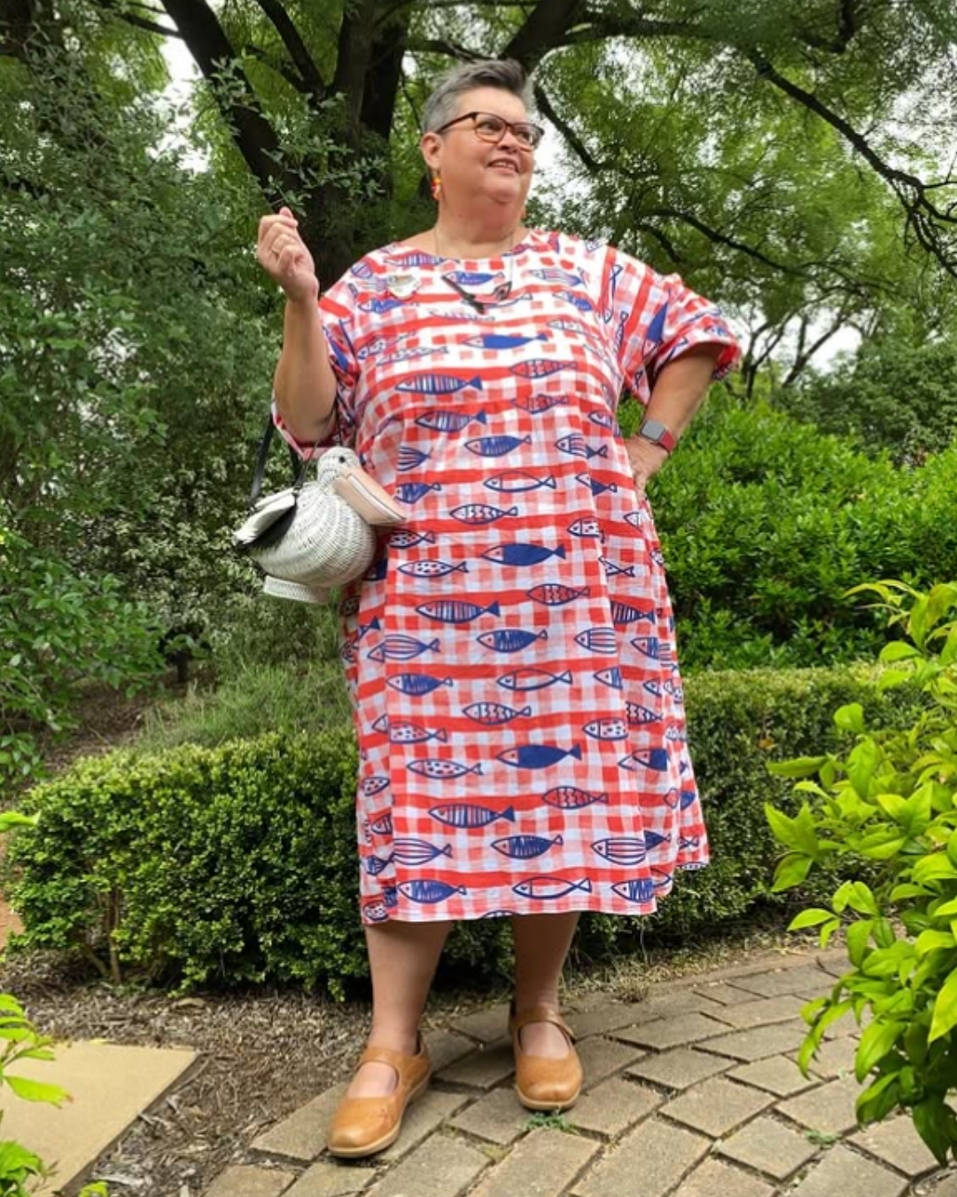 It’s rare for me to go out without some kind of accessory – the beauty of the Hope Dress is that lovely neckline which accommodates a statement necklace rather nicely! Add some colourful earrings, a brooch and a unique handbag (shout out to my latest obsession of Wicker Darling bags!) and I’m the happiest sewist out there. My fish Hope Woven Dress was sewn especially for Brooches by the Bay – an annual event held in Brisbane for accessory lovers from all over Australia. I had a lot of fun planning how to style that dress – in fact, the fabric was inspired by a statement fish necklace I wanted to wear on the day.