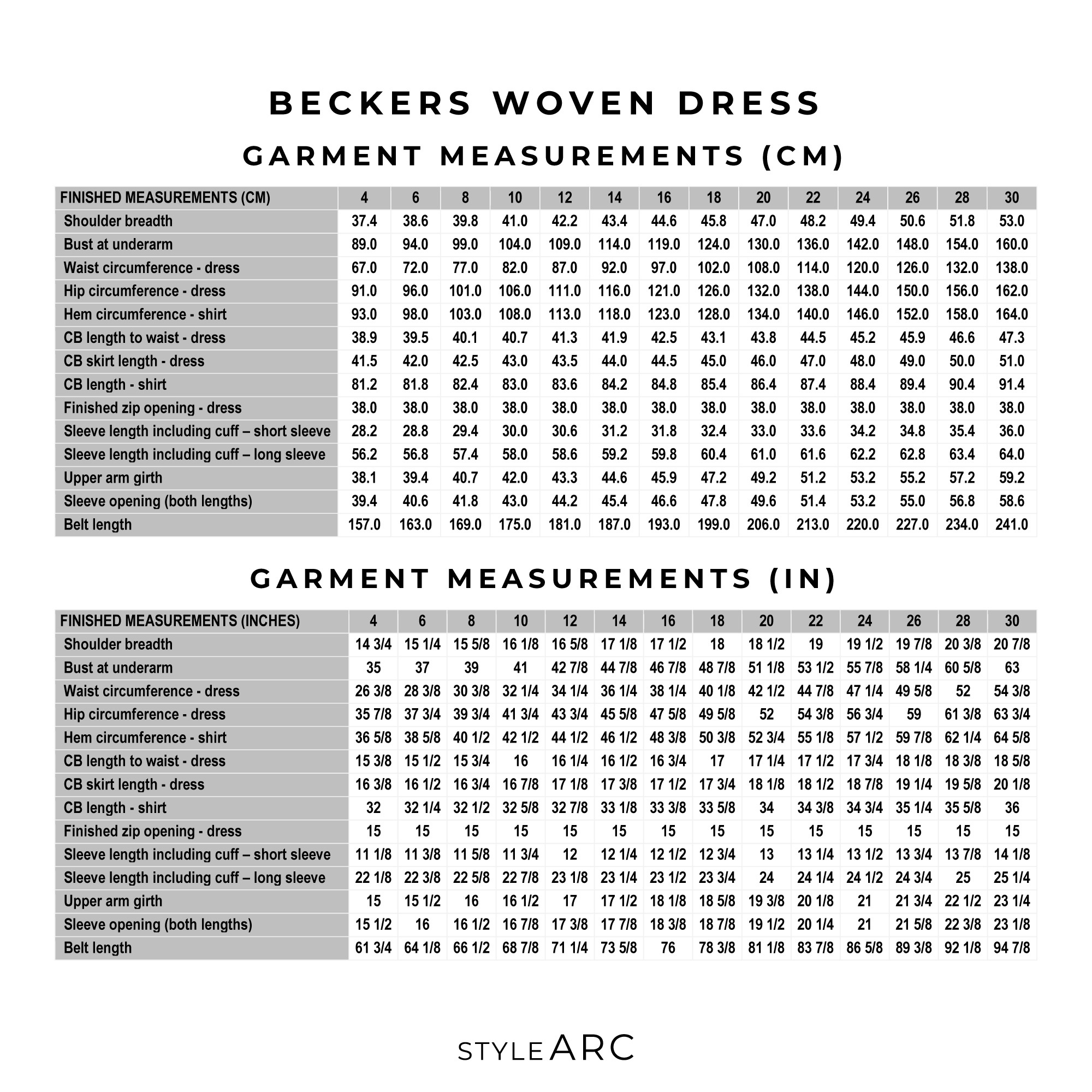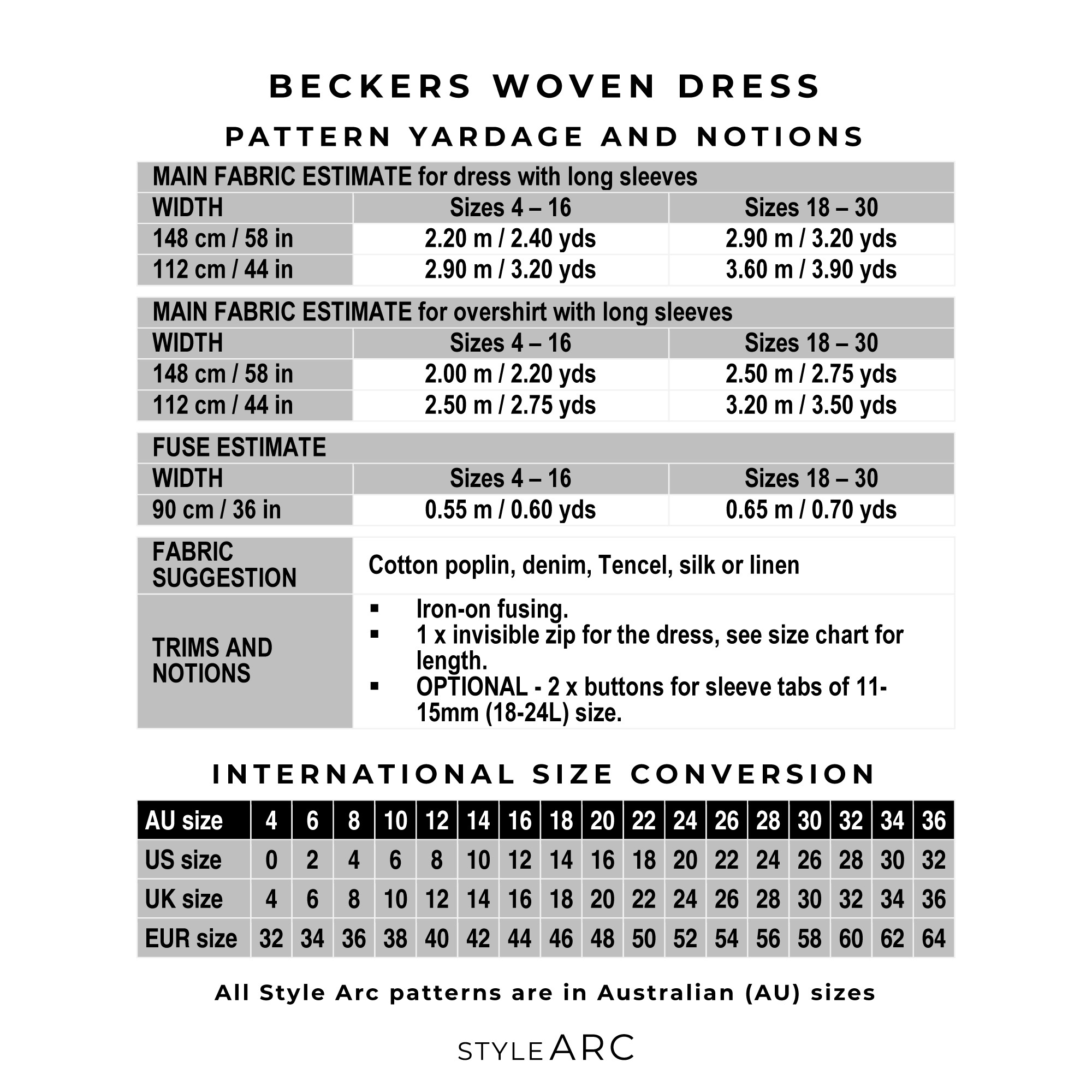 Becker is available in our usual super-inclusive size range. The pattern comes in Australian sizes 4–30, and you can choose from PDF (layered + projector) or printed format.