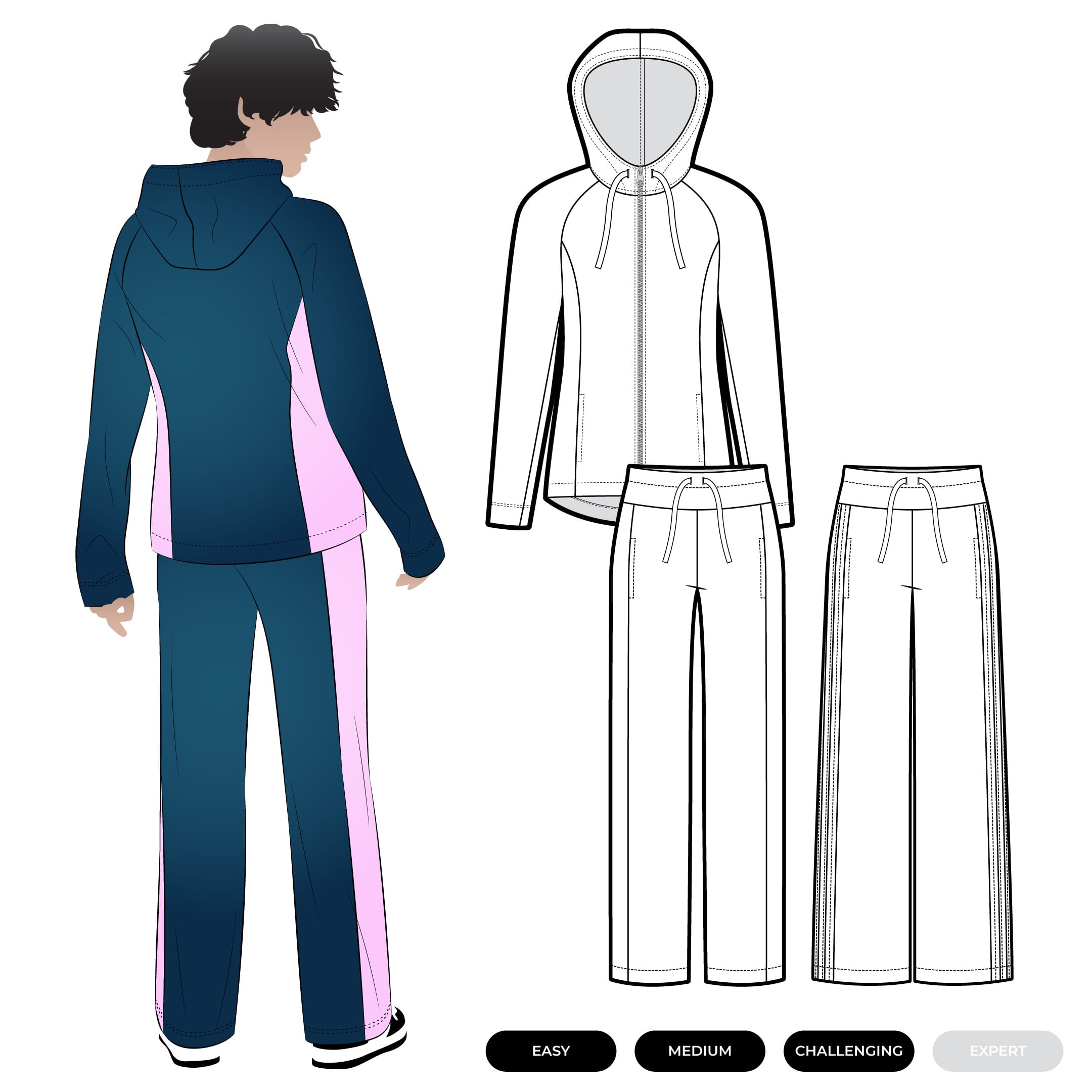 Get active or chill out in the Sunday Jacket and Pant Bundle! The Sunday Zip Jacket is a hooded knit jacket with zip front and raglan sleeves that will take you anywhere. The Sunday Walking Pant are a straight leg track pant with elastic waist and inseam pockets. Top off your outfit with the bonus headband pattern included!