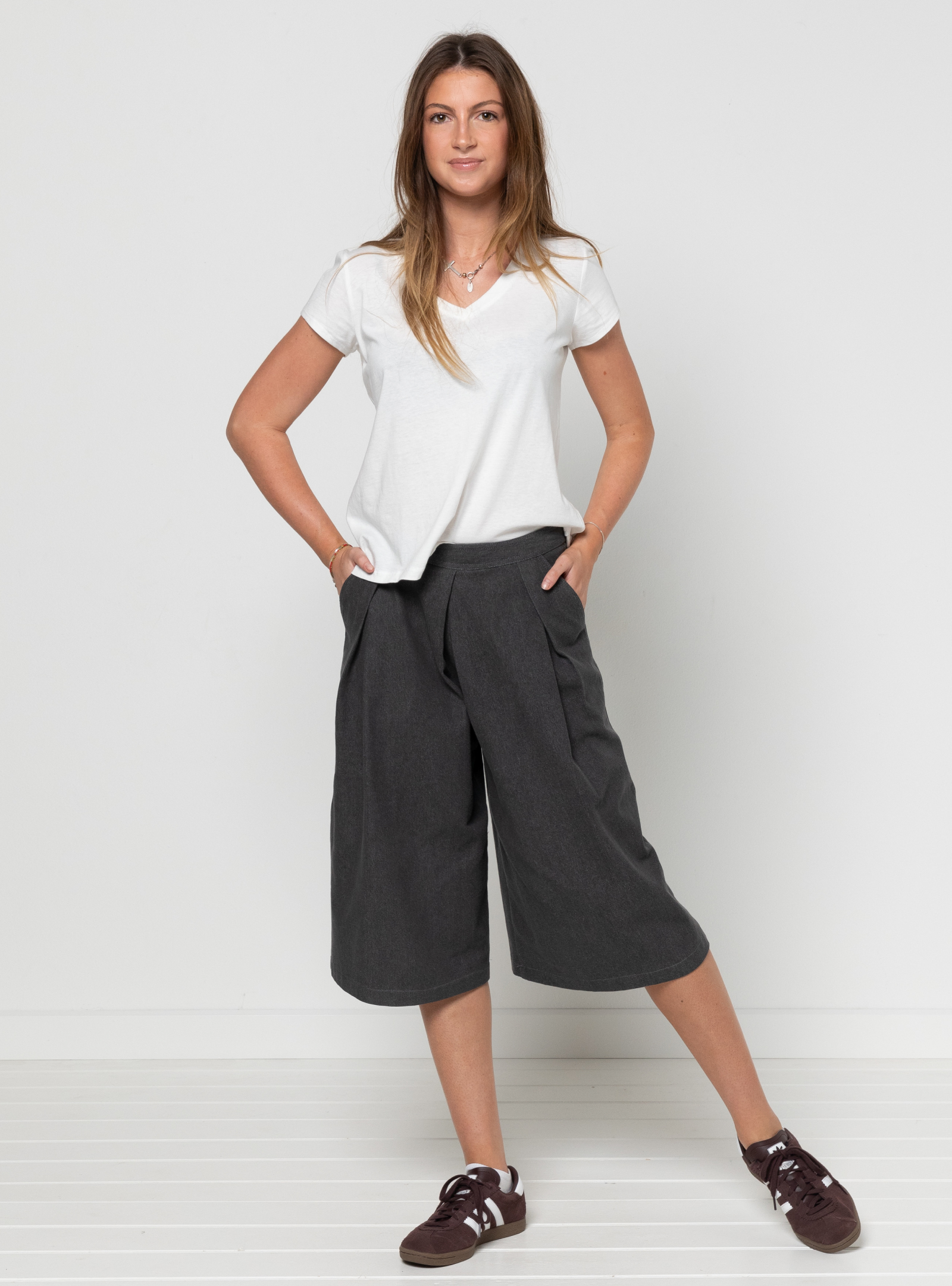 Erin Woven Culottes by Style Arc - Pleat front culottes with angled pockets