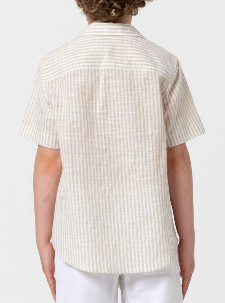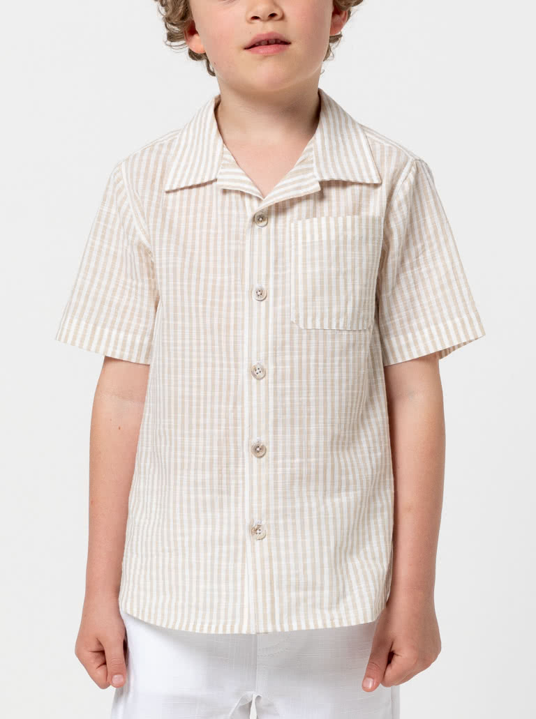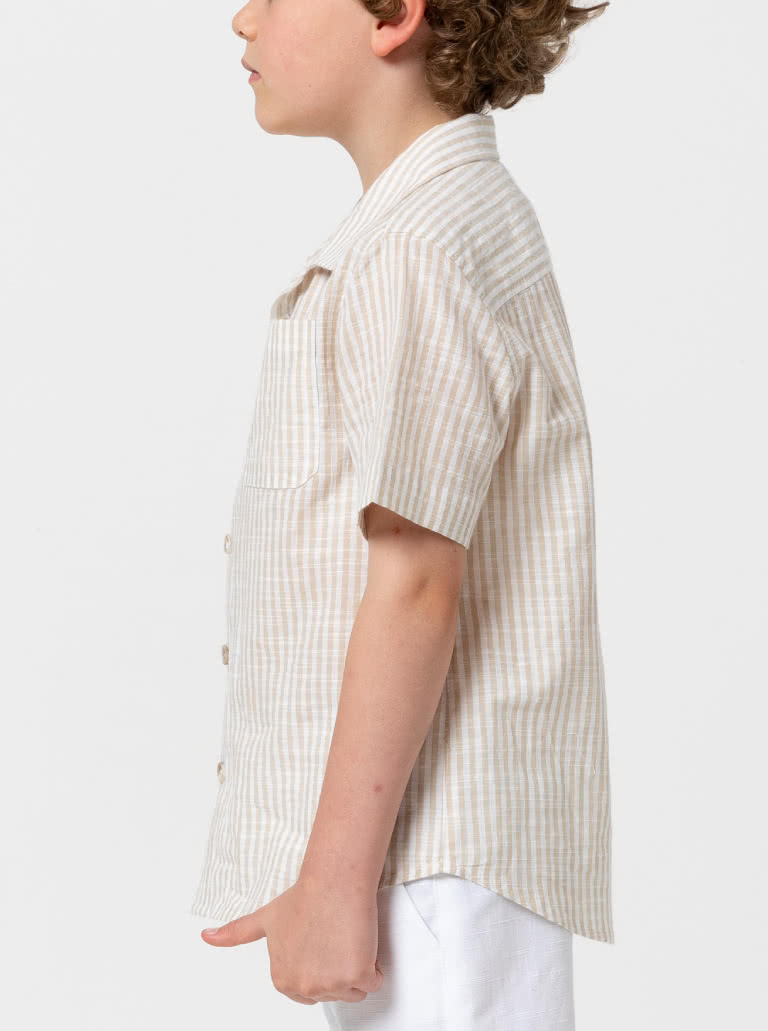 This versatile kids sewing pattern, designed for sizes 2-14, is a must-have for everyday wear. The layered pattern features a classic button-front opening, crisp collar and short sleeves, finished with a shaped hemline for easy, comfortable wear. Thoughtful details like a breast pocket and double yoke add a quality, ready-to-wear feel, making this pattern perfect for creating polished handmade pieces kids will love to wear.