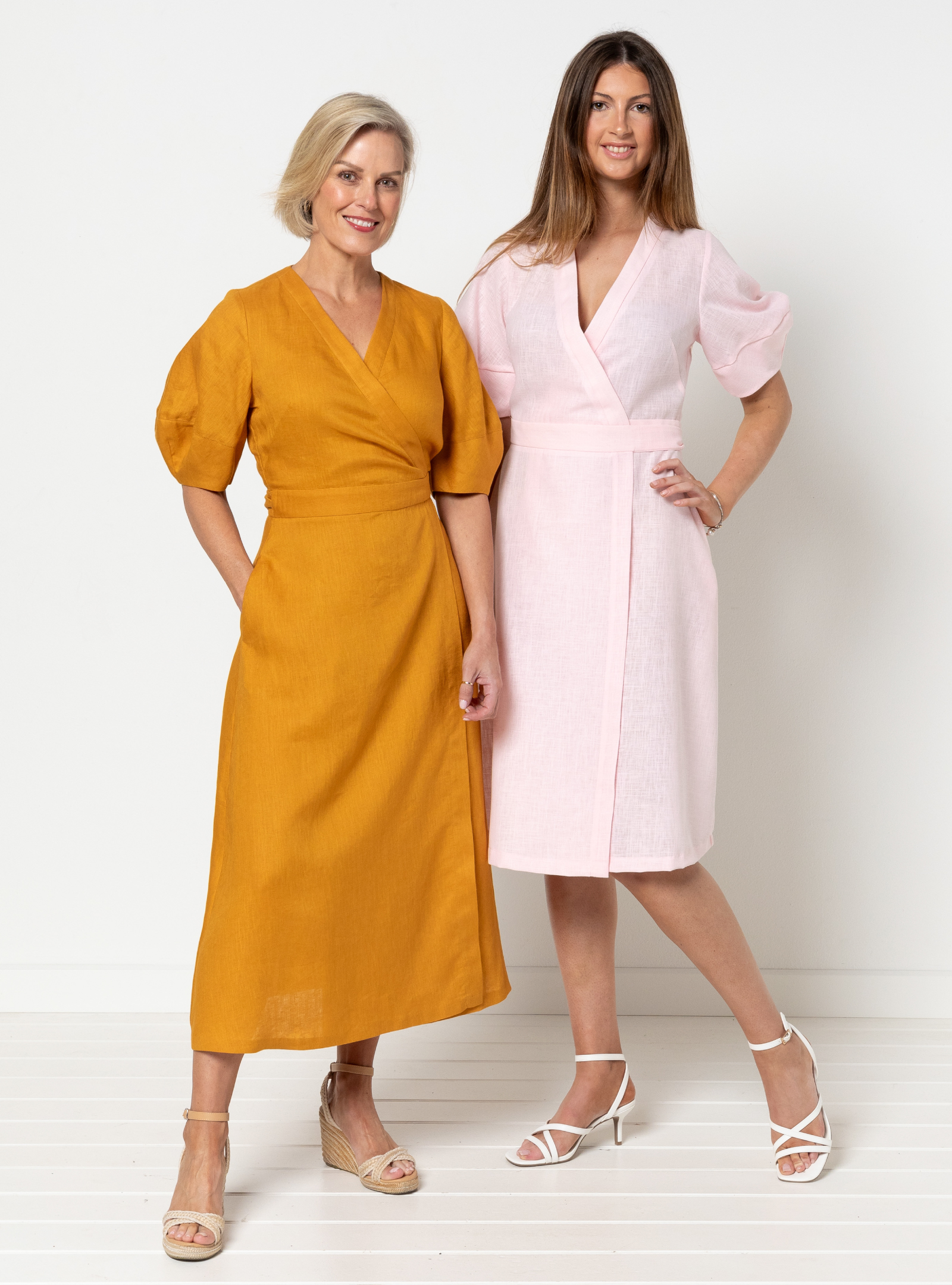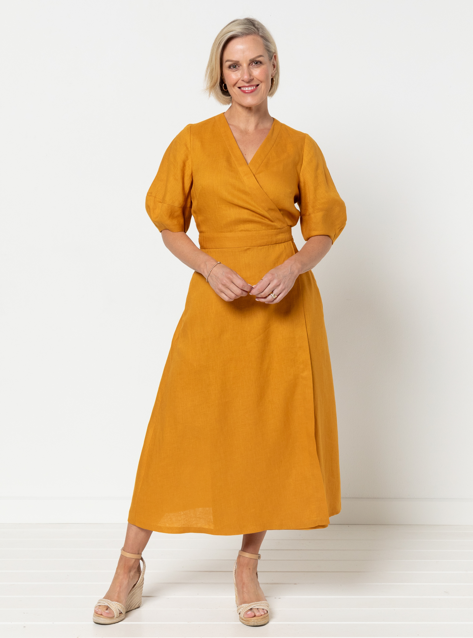 Millicent Wrap Dress by Style Arc - Waisted long length wrap dress with two sleeve options