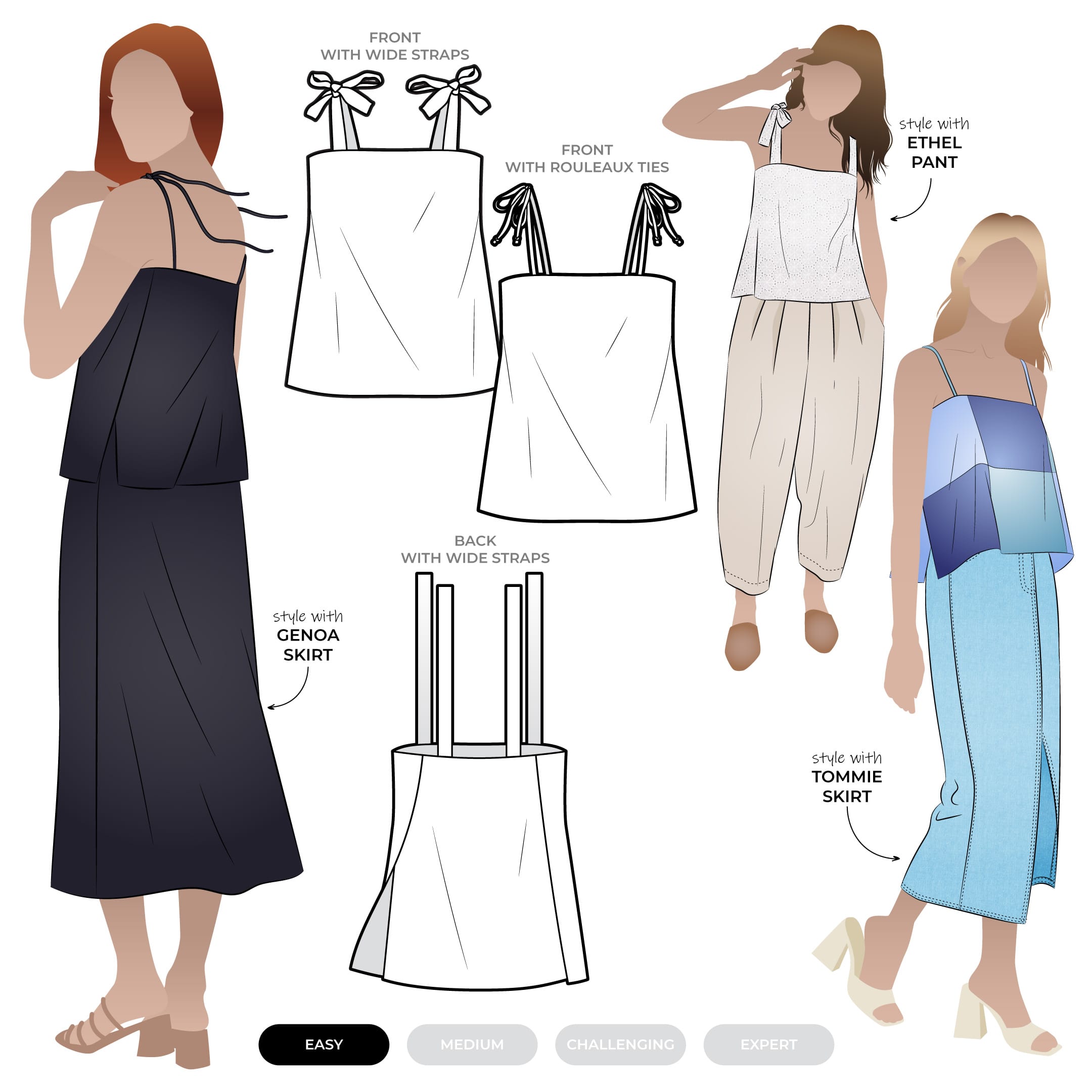 Multi-size PDF sewing pattern download, sent to your email address in multi-sheet/tiled format for printing at home on A4 or US letter size paper and single-sheet/wide format for printing at a copy shop. Please note that the wide format files are set up for printing on 36" wide (or wider) paper rolls, and also A0 paper sheets. A projector file is also included.