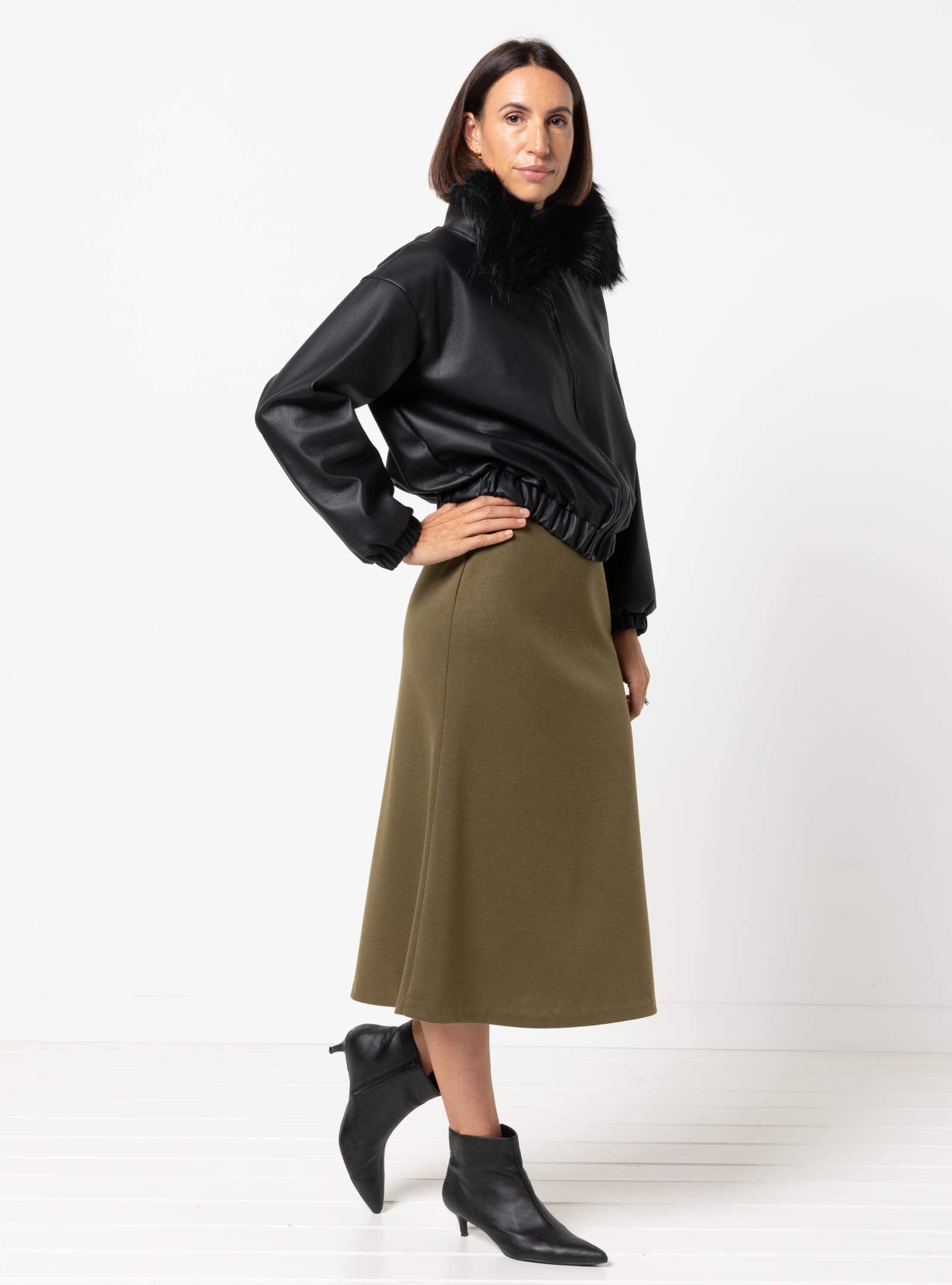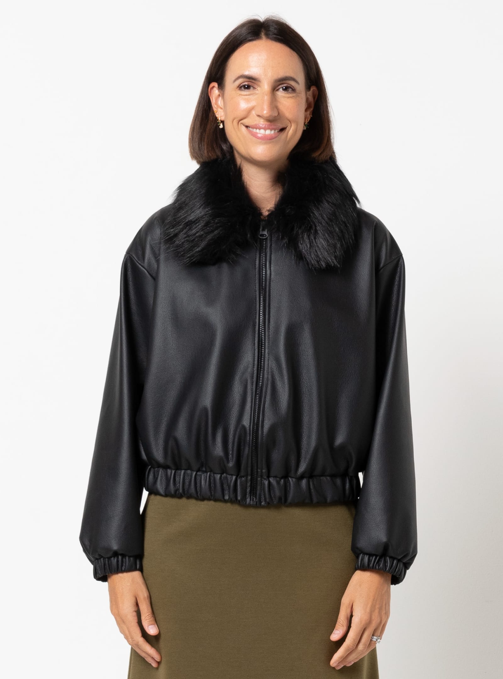 The Sid Bomber Jacket sewing pattern is a versatile, easy make packed with stylish options, making it a great addition to any handmade wardrobe. Featuring a practical zip front, you can choose from three collar styles-rib, high, or rounded flat-along with three hem finishes including a rib band, elasticated casing, or an elasticated facing for the short version. With two cuff options and the choice to sew it long or short, Sid gives you multiple ways to customise your look.