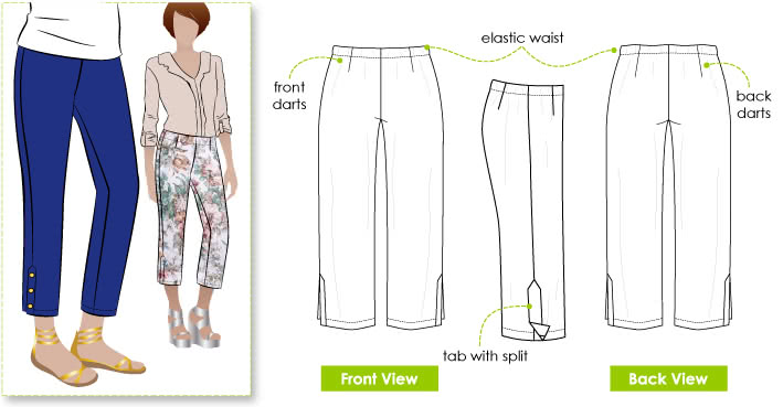 Tori Crop Pant is an Arc Archives style. Limited formats. Construction sheets are minimal, and a tutorial might not exist - for confident sewists who are up for a challenge.